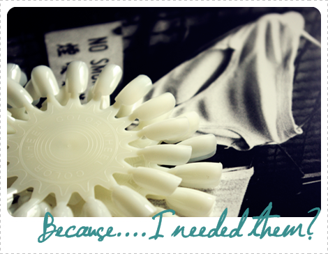This is one purchase I would never have done if it wasn't for allyoubloggers. It's all your fault really*, making me think I needed those. Now that I have them, I'm not really sure what to do with them. Do I really want to waste my precious nailpolish on some plastic?