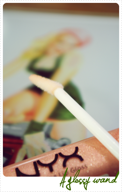 But now I have this NYX lipgloss, Crystal soda, and it's rather cute in it's peachy glitter smelling like Dr Pepper, so I would like to use it. That is if I can get past my aversion for the lipgloss-wand. Please tell me I am not alone in this?